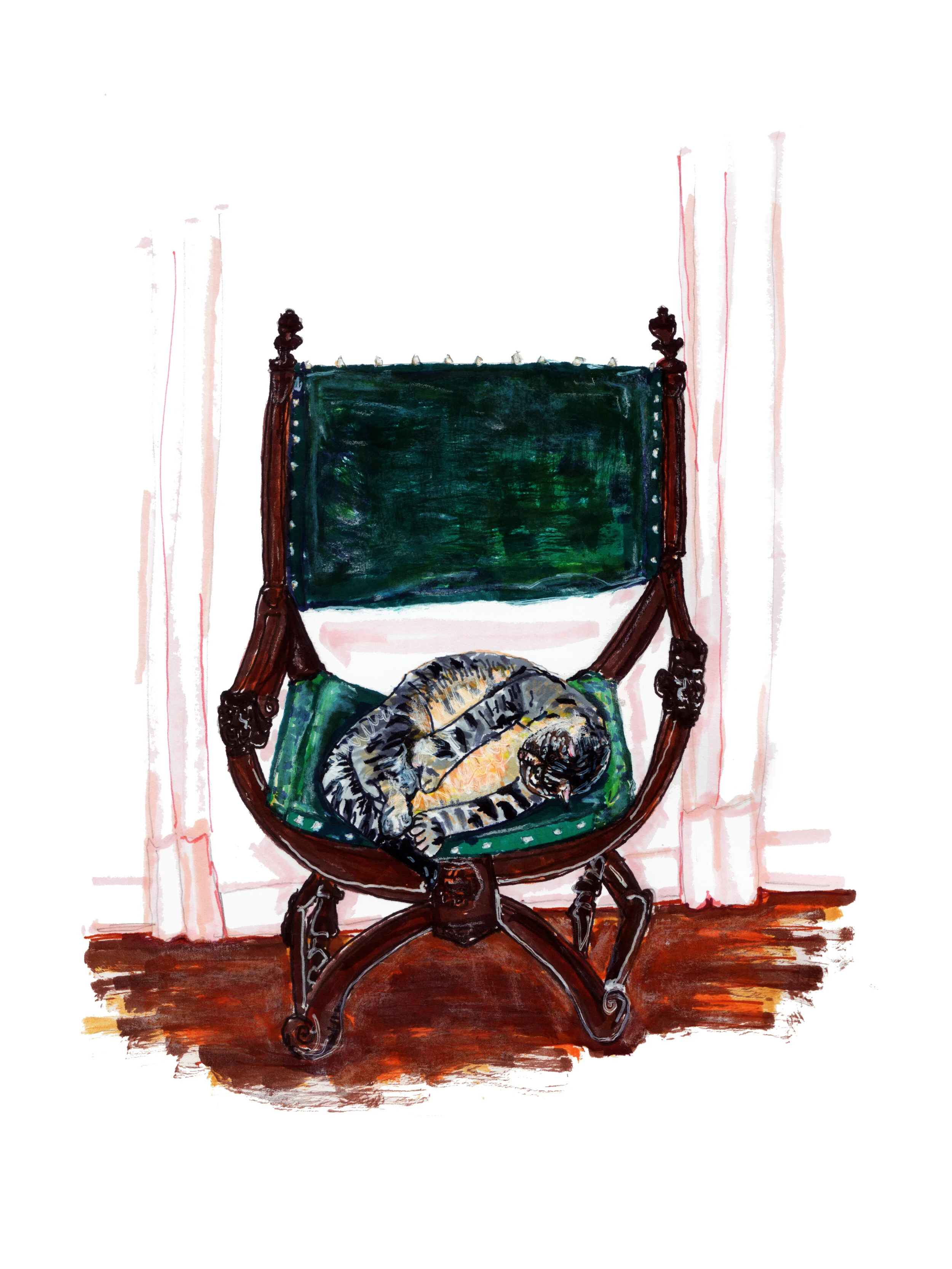 Print of an original mixed media cat portrait. This kitty is extra fancy because he lives in the Hemingway House and Museum in Key West!